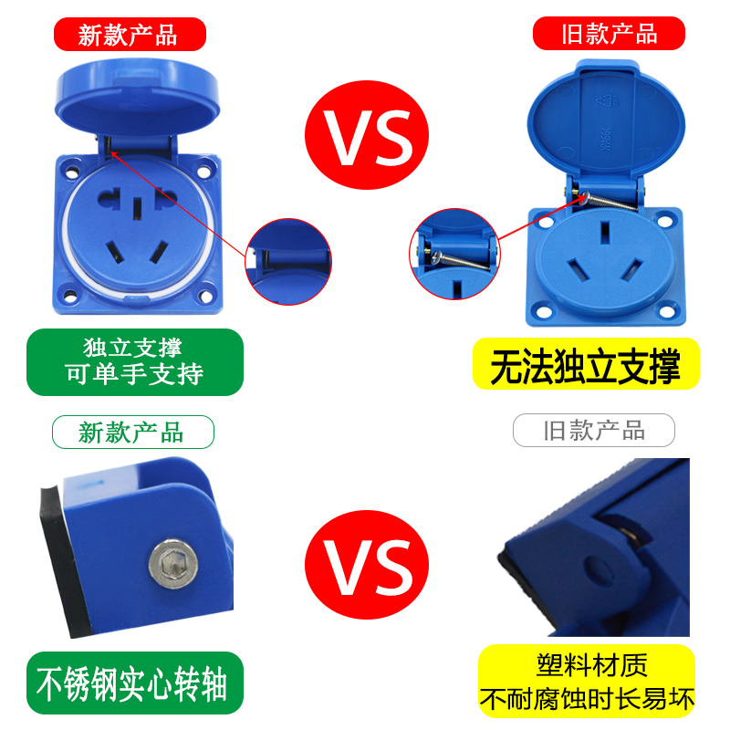 Blue panel five-hole 10A Blue panel three-hole 16A Red panel five-hole 10A Red panel three-hole 16A Black panel five-hole 10A Black panel three-hole 16A