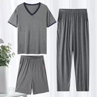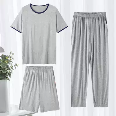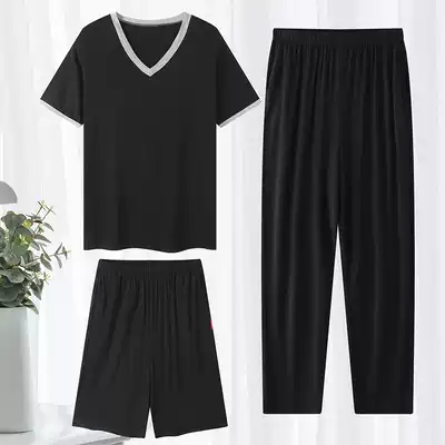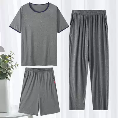 Men's pajamas Summer modal suit three-piece short-sleeved shorts trousers thin casual loungewear can be worn outside