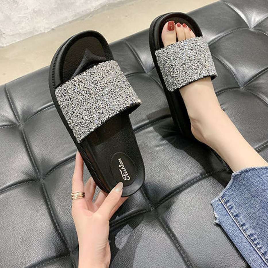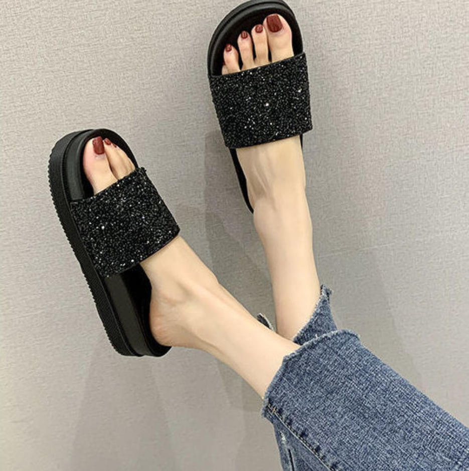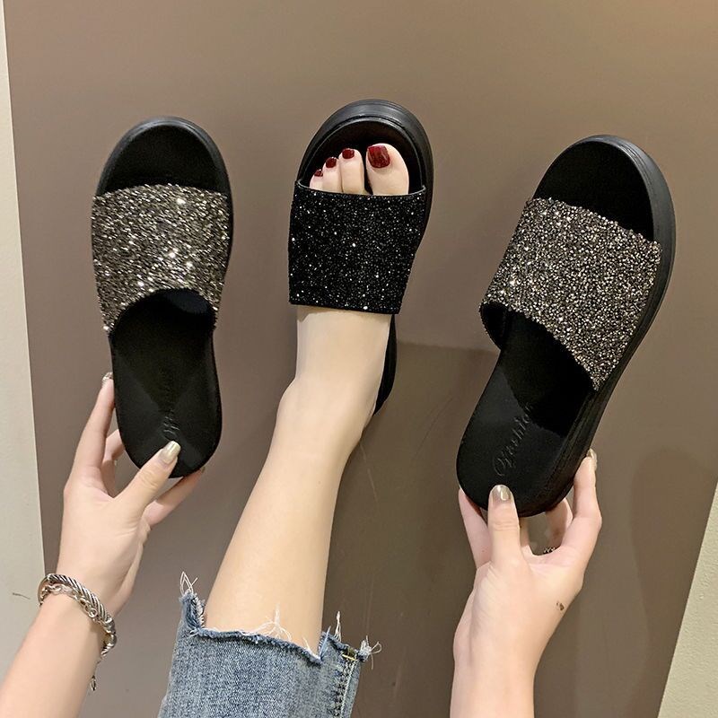 Thick bottom slippers female water drill 2020 Summer new fashion exterior wearing Korean version 100 hitch cake slopes heel mesh red sandals