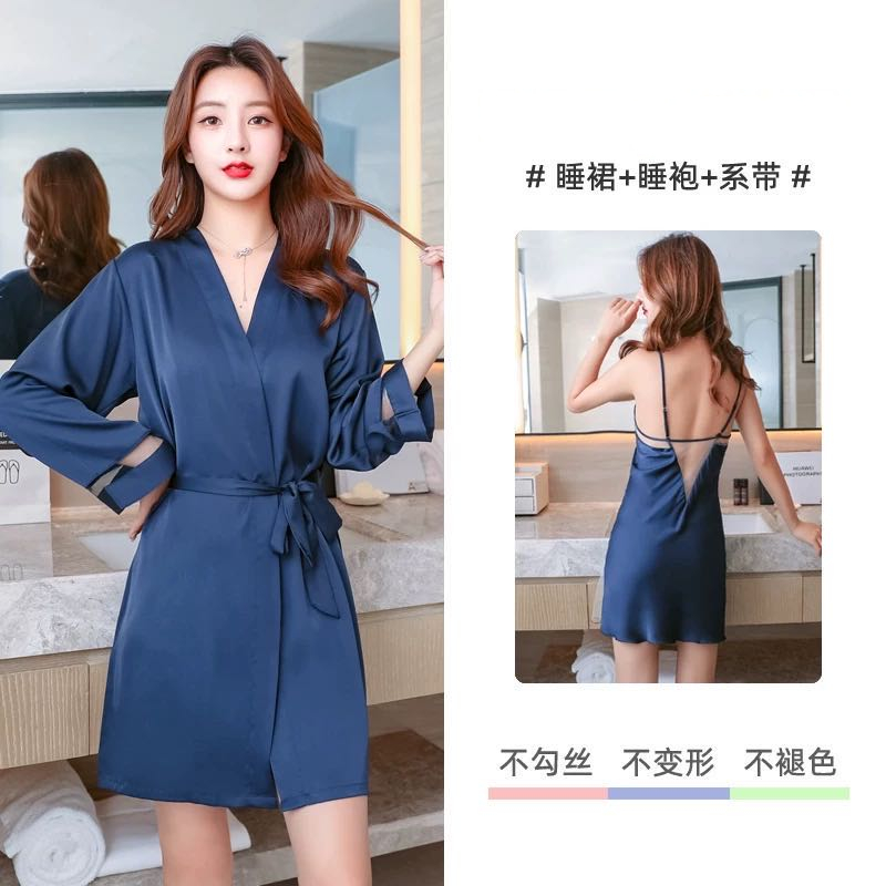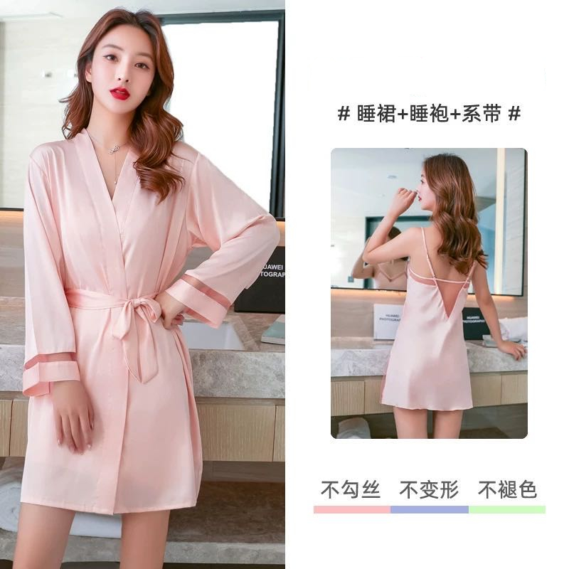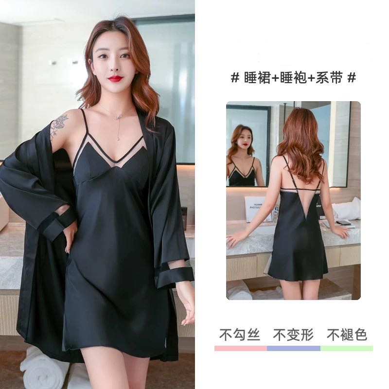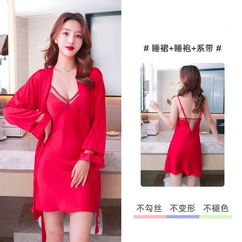 Sexy Harness Sleeping Dressing Woman Summer Thin icing Silk Private room Fire spicy with chest cushion Sleeping Dress Sleeping Robe for spring and autumn Two sets