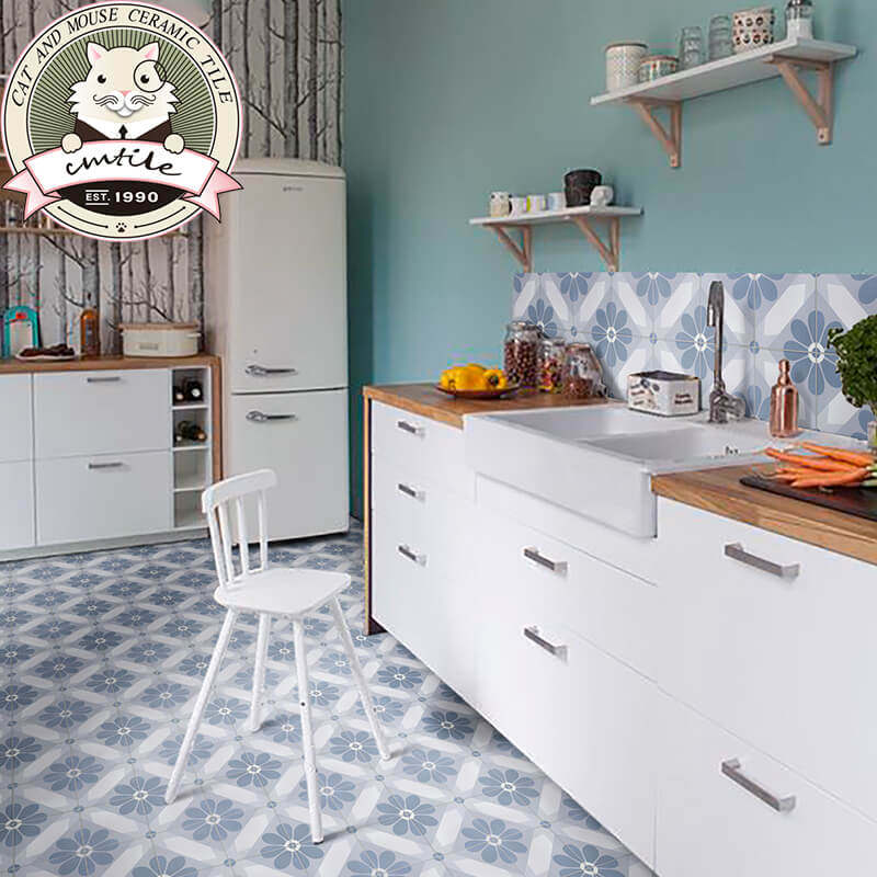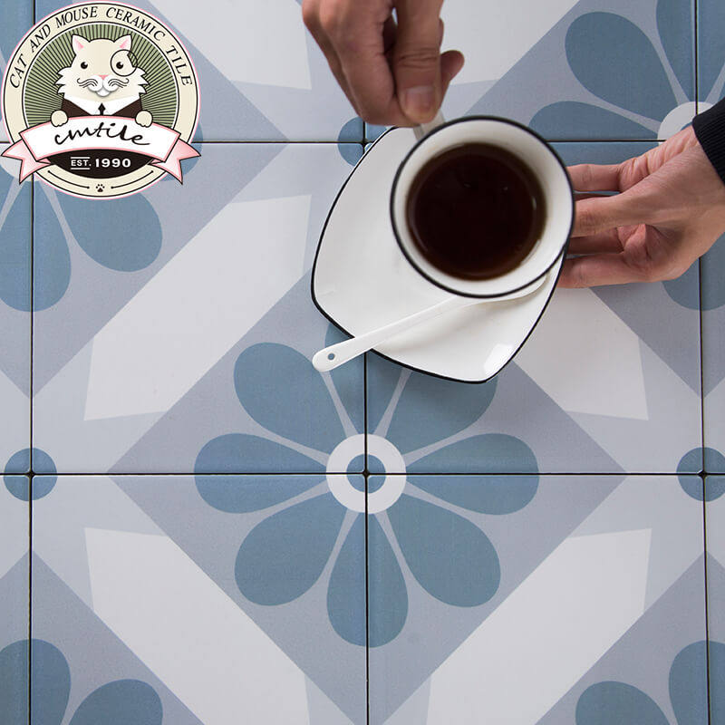 Nordic blue ins small flower brick restaurant balcony non-slip floor tile bathroom background TV wall brick 200*200