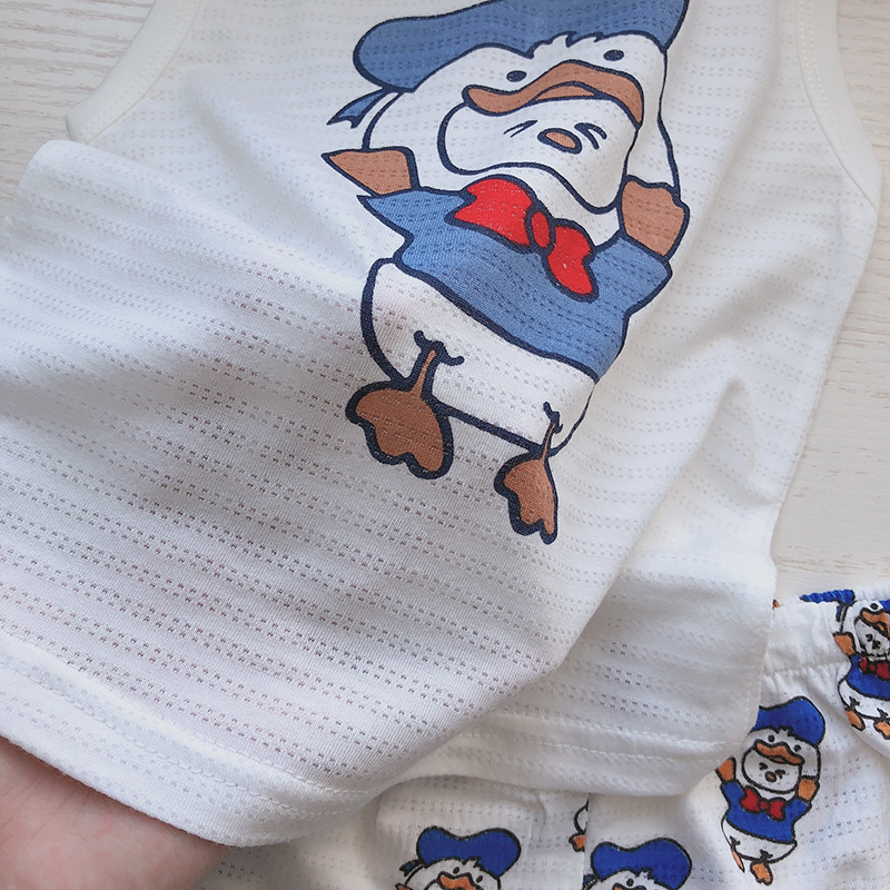 Summer baby bamboo fiber vest shorts set boys and girls cartoon breathing pajamas children out clothes thin sleeveless