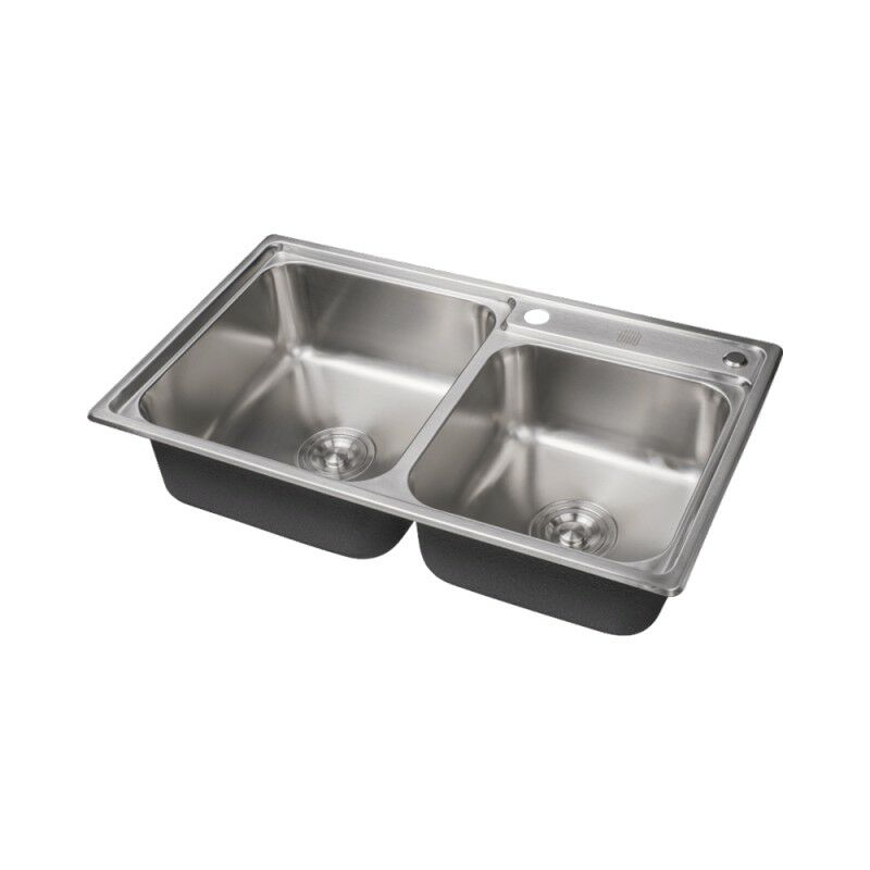 There is a discount on the purchase of a large white faucet with a single sink and a double sink
