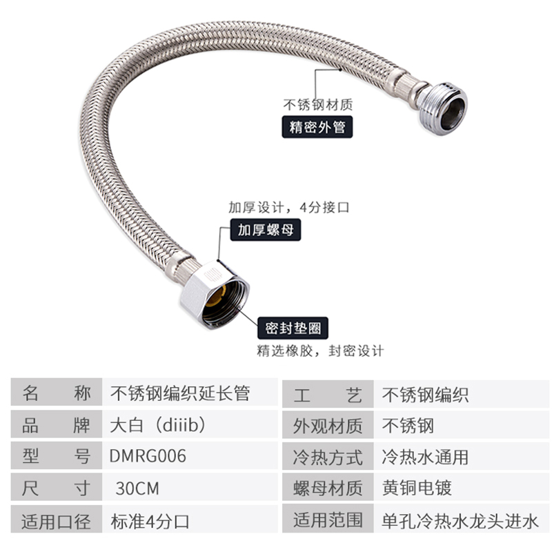 The high white stainless steel inlet pipe prolongs the inner and outer wire 4 - point connecting tube metal and external cold and heat - heating tube