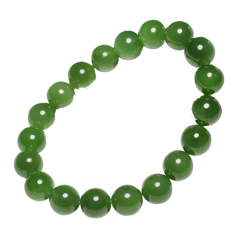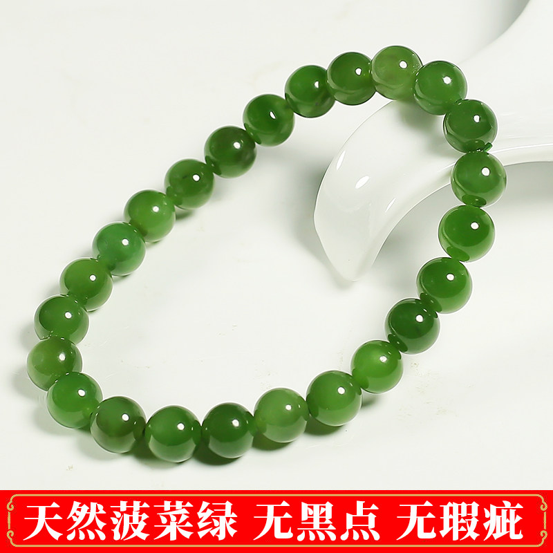 Xinjiang Hetian jade jasper bracelet men's and women's natural spinach green round bead hand beads without black spots