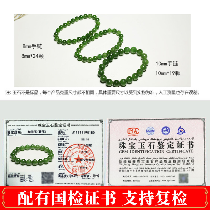 Hetian jasper bracelet (8mm) with certificate Hetian jasper bracelet (10mm) with certificate