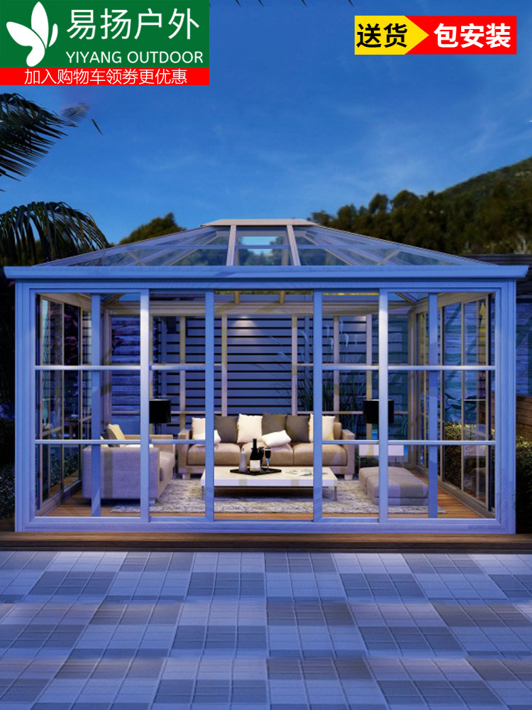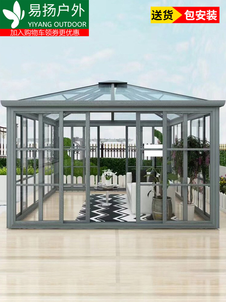Outdoor Leisure Panoramic Glass Greenhouse Aluminum Alloy Custom Terrace Courtyard Garden Design Small House Villa