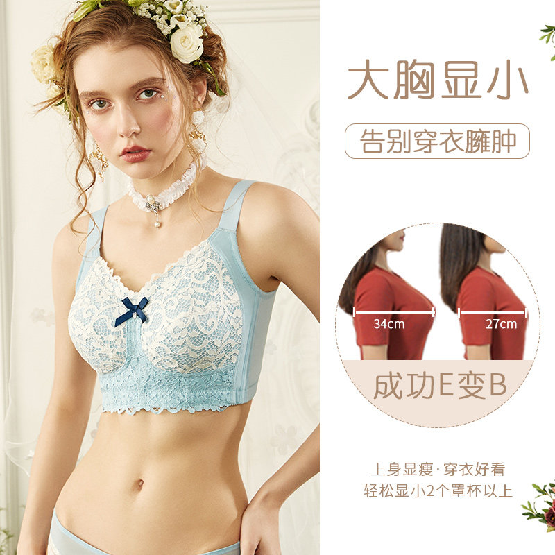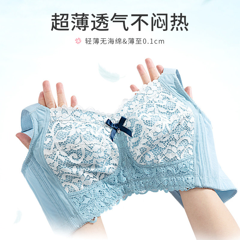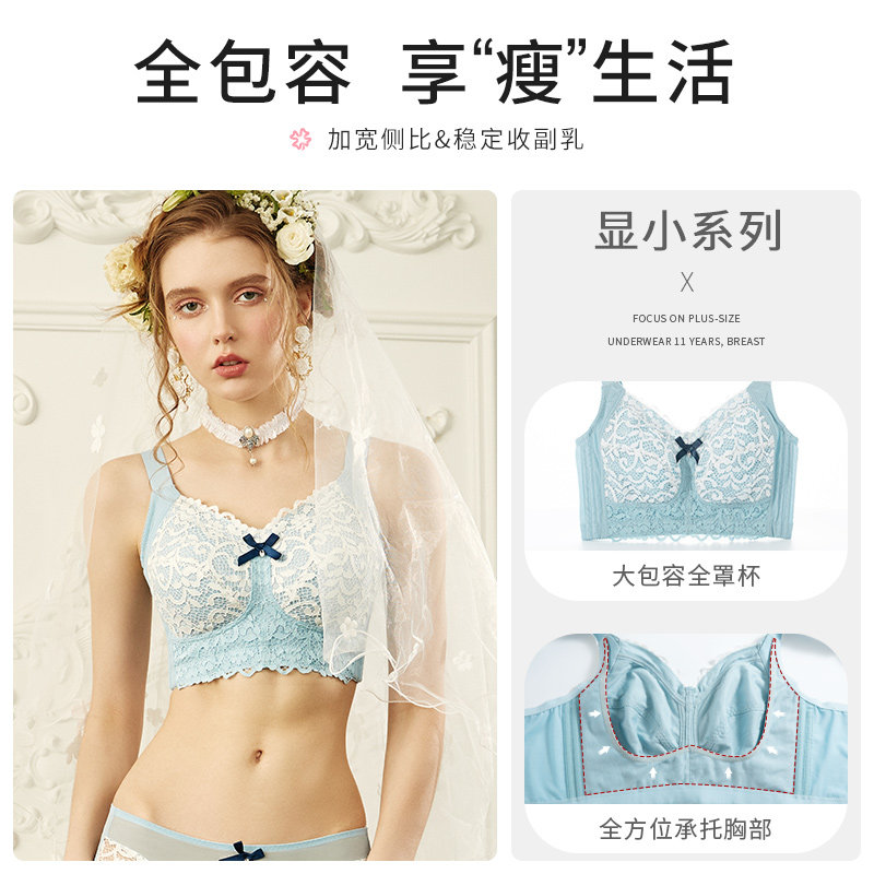 Large size underwear women's fat mm ultra-thin collection breasts gather anti-sagging full cup bra big breasts show small bra summer