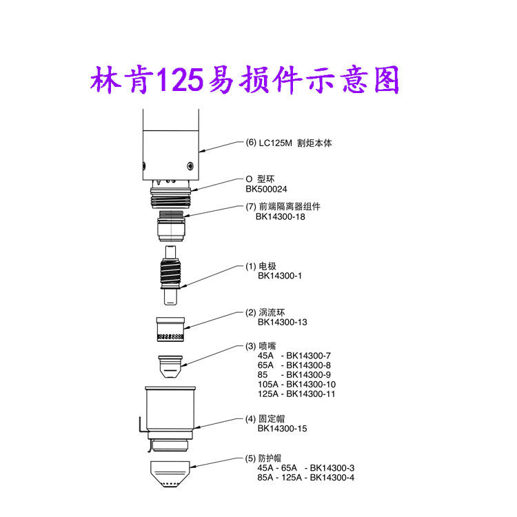 Electrode BK14300-1 nozzle BK14300 -- 7 nozzle BK14300 -- 8 nozzle BK14300 -- 9 nozzle BK14300 -- 10