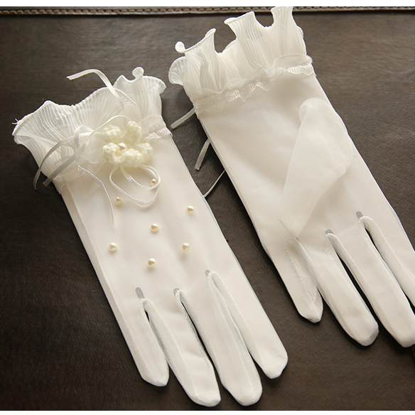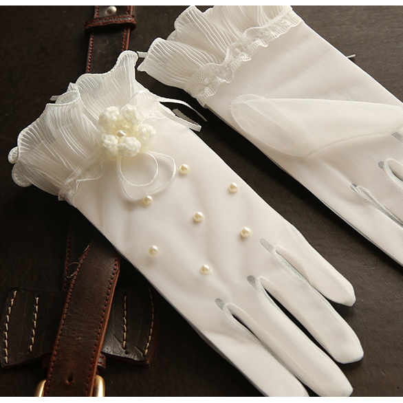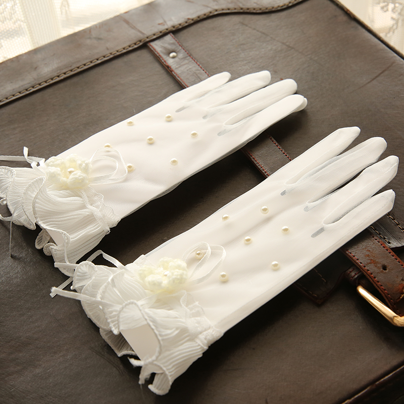 Bride Wedding Gloves Short Korean Jing Star Same Dress Accessories Korean Lace Pearl Gloves White