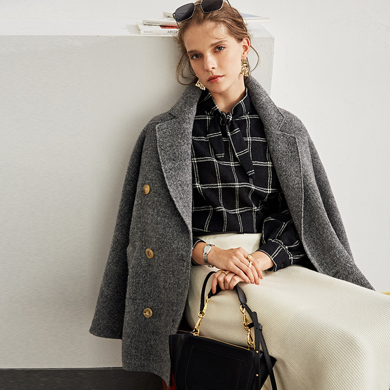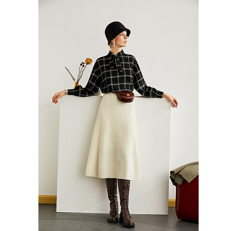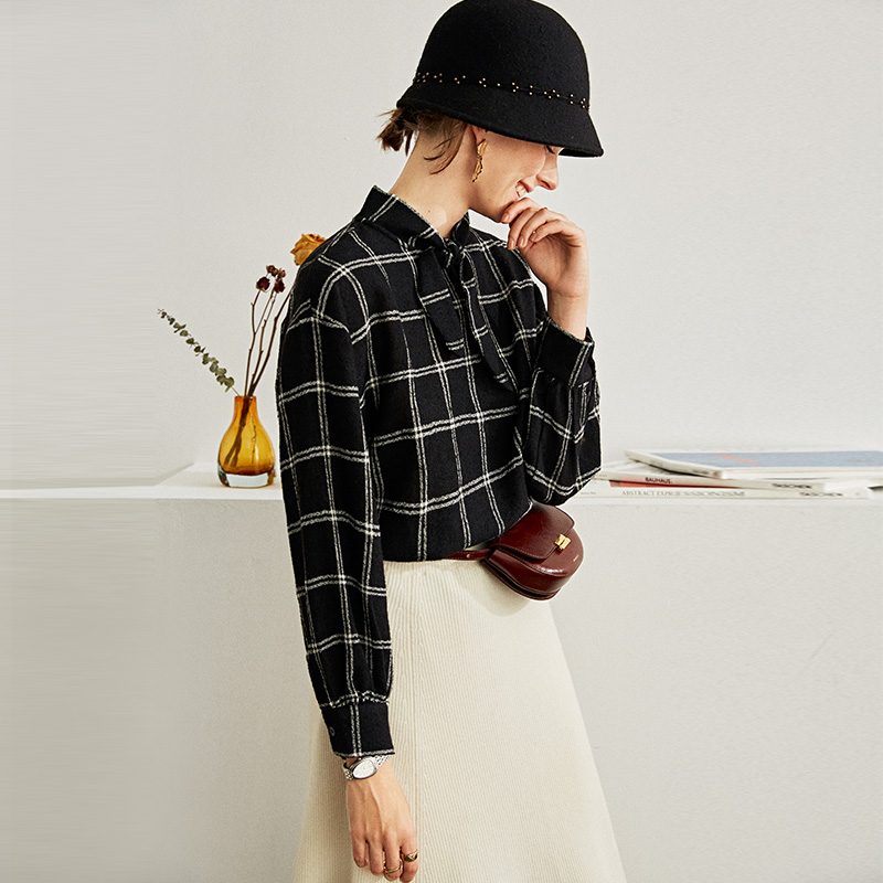 D home window grid retro light fashion lightweight high warm wool shirt women W22492