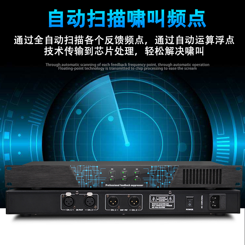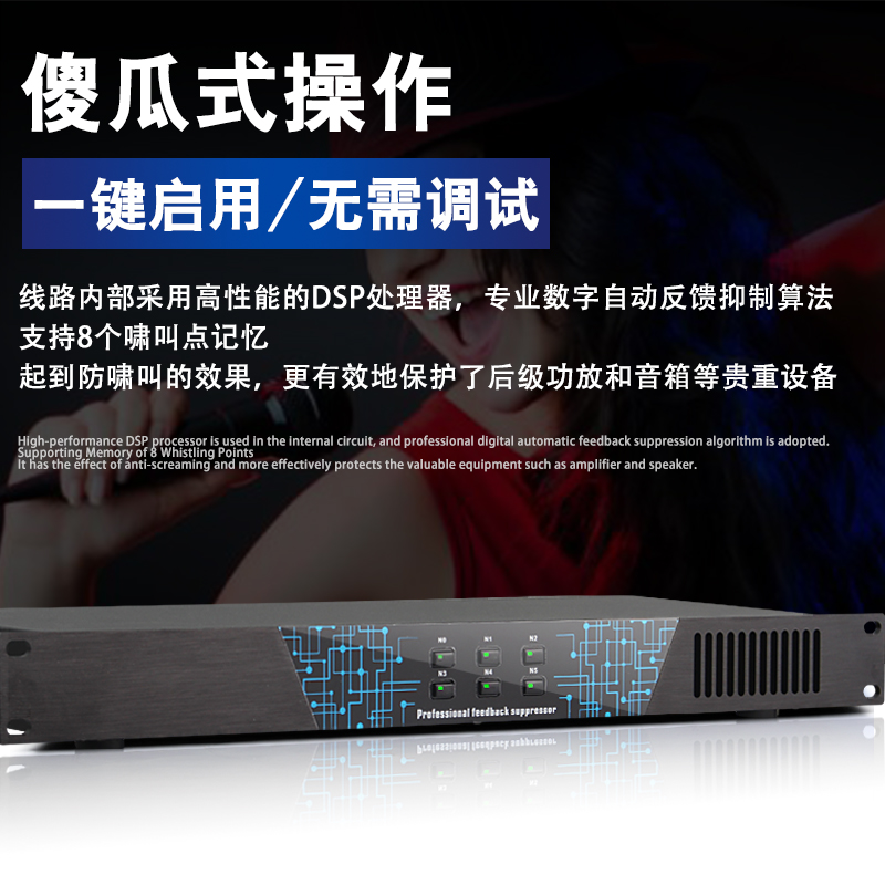 Microphone anti-whistling feedback suppressor professional performance stage conference pre-level intelligent automatic audio processor