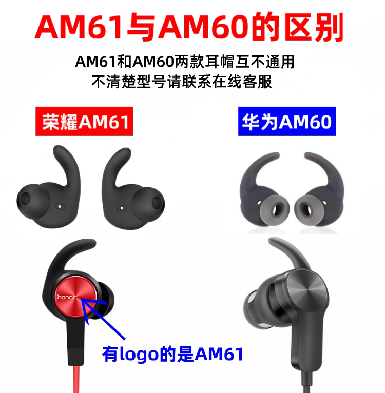 Huawei AM60 earbuds Large 1 pair of Huawei AM60 earbuds Mid 1 pair of Huawei AM60 earbuds 1 pair of Huawei AM60 earbuds Large and medium sized and 1 pair of honor AM61 earbuds large