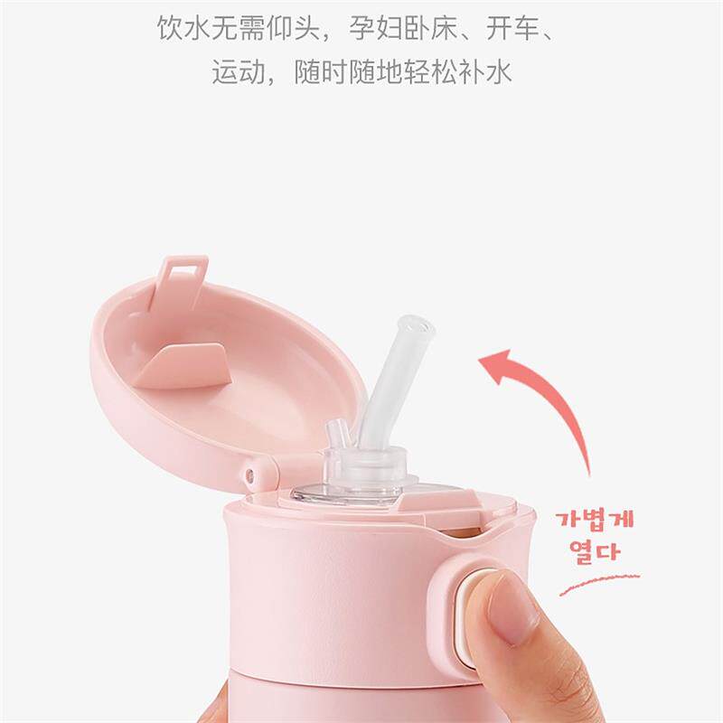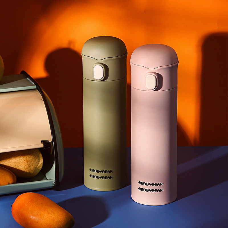 Cup bears tide solid color thermos cup couple car student male and female stainless steel straw water cup