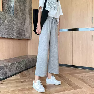 Gray wide-legged pants women's spring and autumn high waist loose straight tube slim all-purpose hanging drag floor casual small sports pants