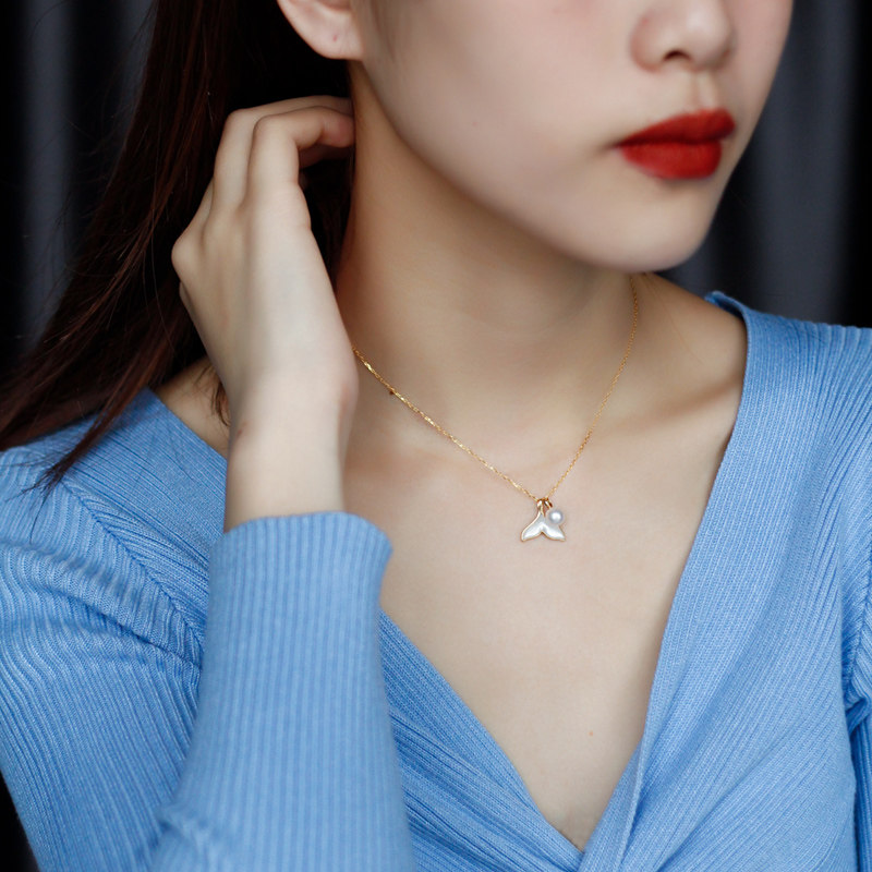 Fish tail pendant 18k gold (without chain sub) fish tail pendant 18k gold (with chain sub) pearl pendant fish tail 18k gold single strip chain sub pearl pendant fish tail pendant (without chain sub)