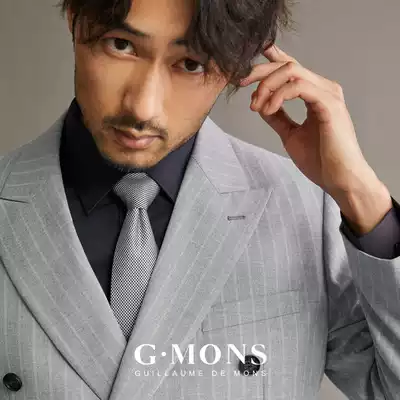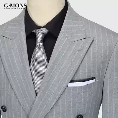Double-breasted suit suit suit men light gray striped suit male English business slim groom wedding dress