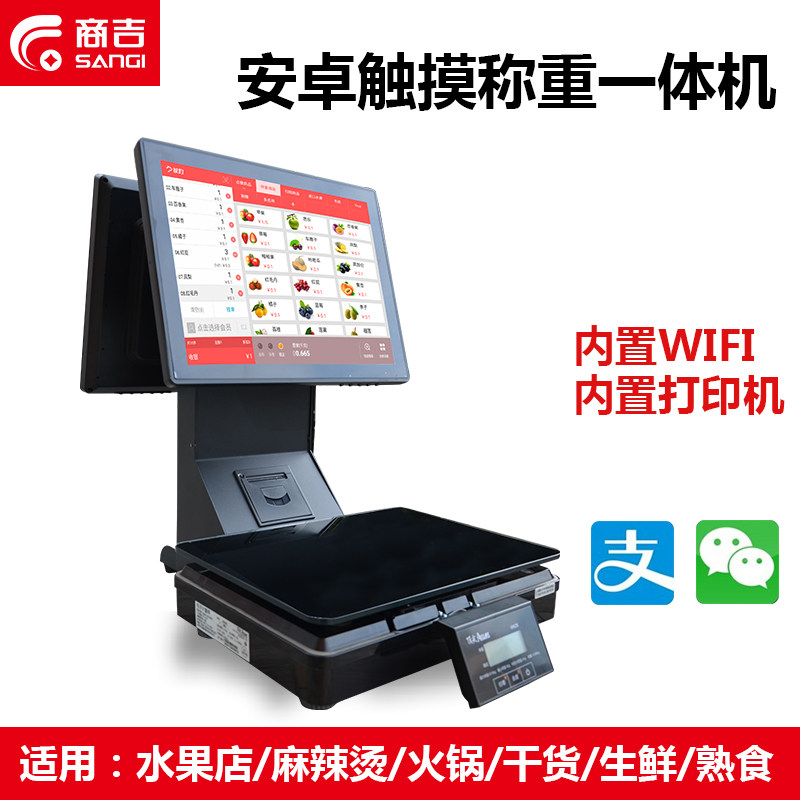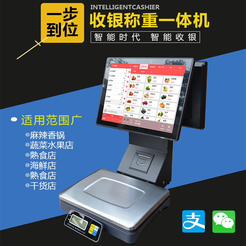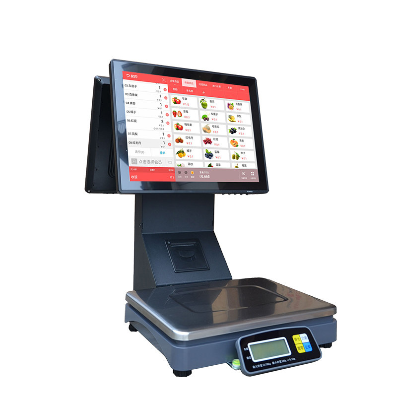 Commercial Ultra Fruit Cashier Silver Weighing All Double Screen Touch Screen Anjo Cashier Scale Supermarket With Scales Cashier System