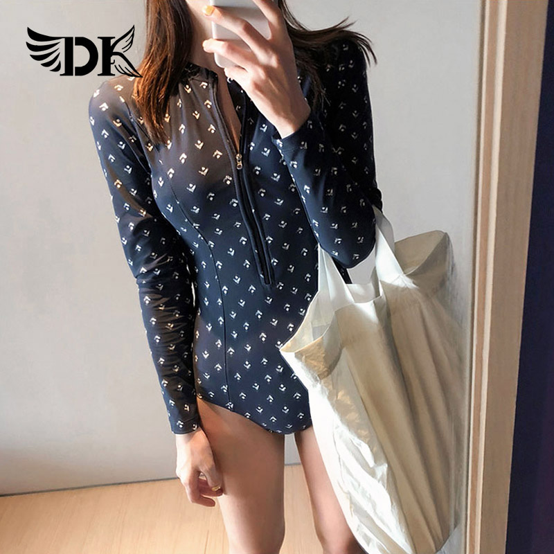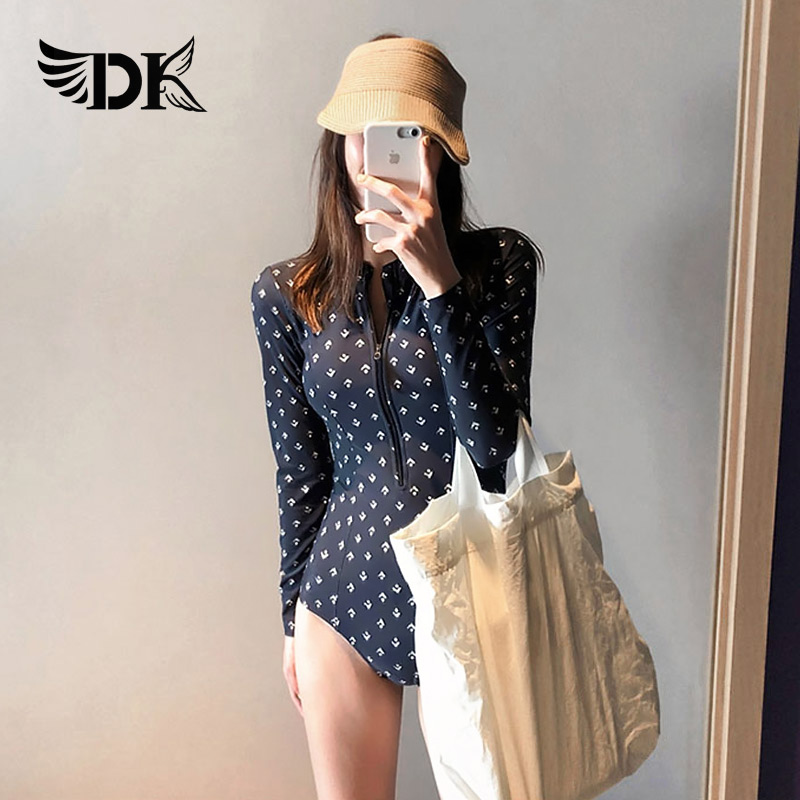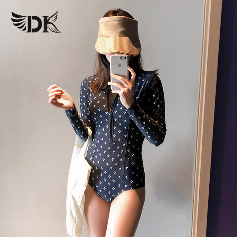 DK swimsuit women 2021 new long-sleeved sun protection conservative belly show thin snorkel hot spring jumpsuit lady
