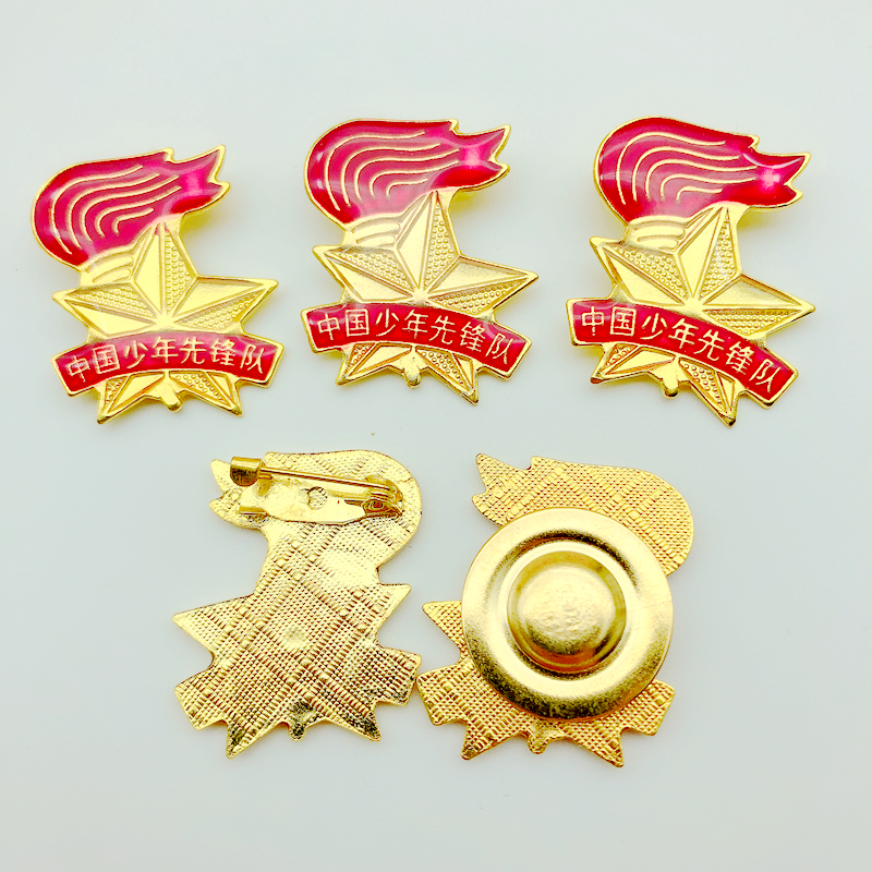 Standard primary school student safety pin emblem Chinese Young Pioneer emblem Torch-shaped Young Pioneer magnetic badge