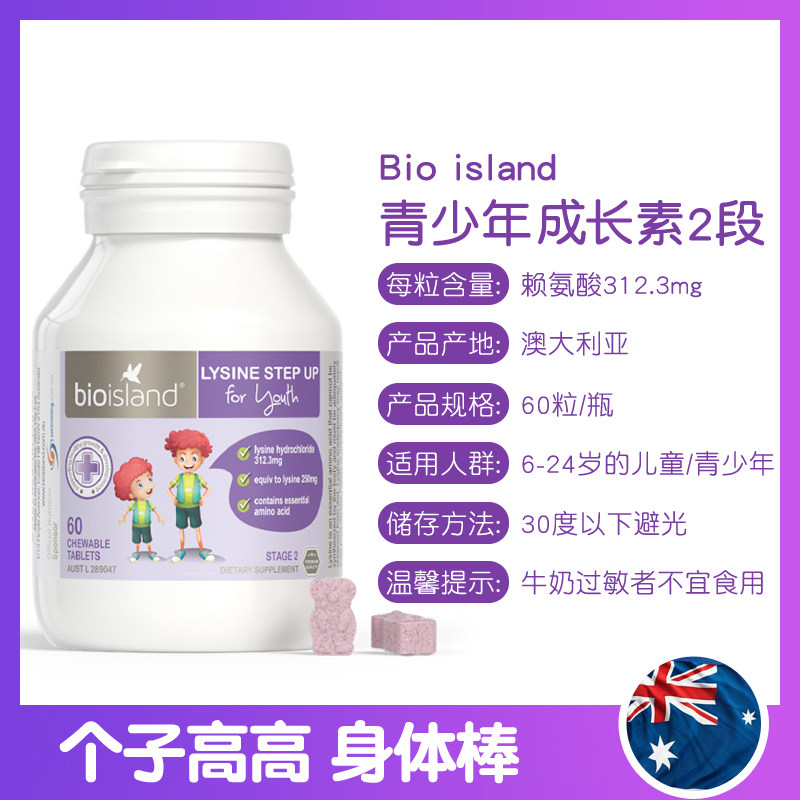 Australian bio island lysine helps grow the two segments of 60 children's teenagers grow gold chewing tablets