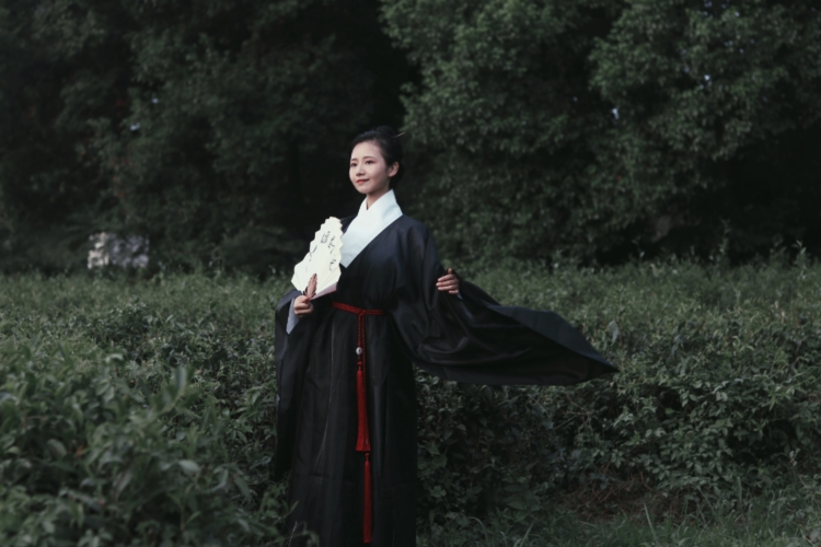 (Long song line) Dao robe Ming system Traditional Hanfu Non-ancient costume Summer Plain yarn bark wrinkle Dao robe spot