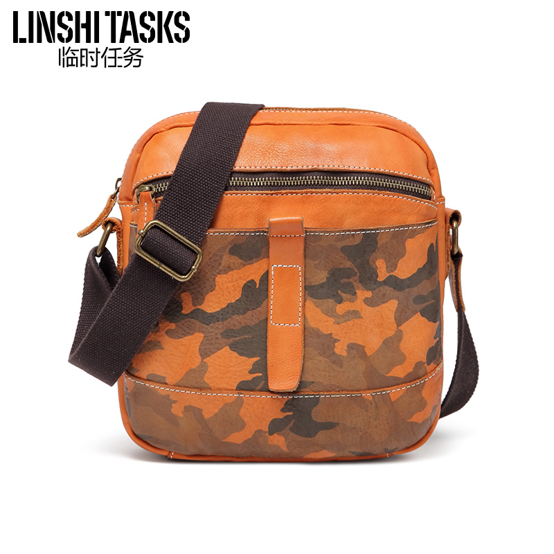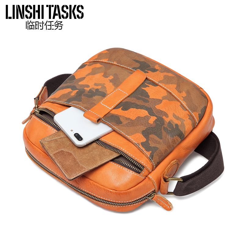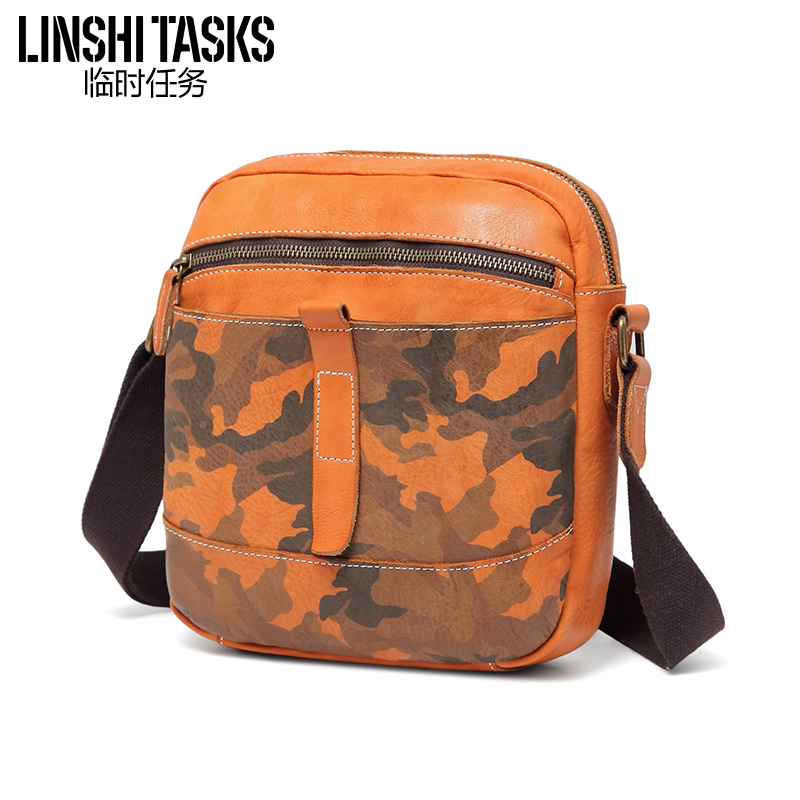 Original design first layer cowhide men's bag shoulder bag vertical retro casual men's bag Messenger bag camouflage backpack