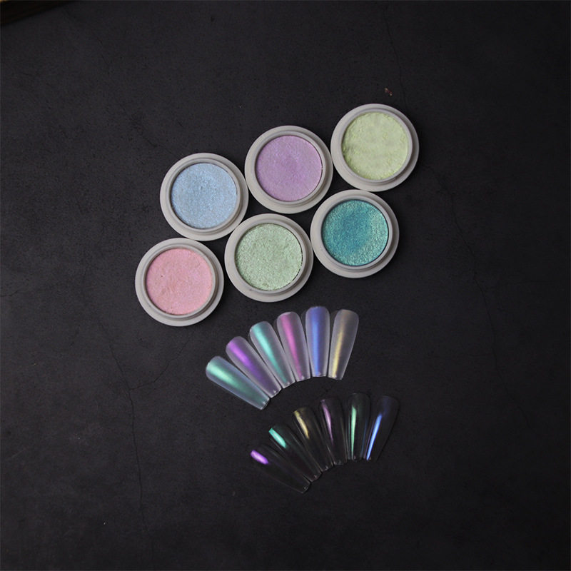 2021 New Nail Solid Aurora Ice Through Naked Fairy Mirror Mirror Blue Purple Polaroid Magic Mirror Powder
