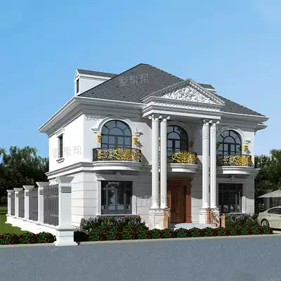 Rural self-built villa design drawings Modern Baroque two-story living room with balcony large sample drawing villa construction