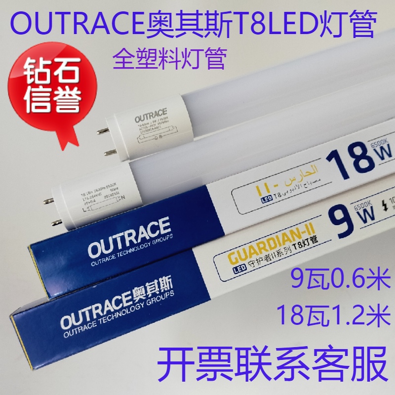 Oits lighting tube T8LED full plastic PC tube 18w9w1 20 6 m electric bar fluorescent light strip fluorescent double end
