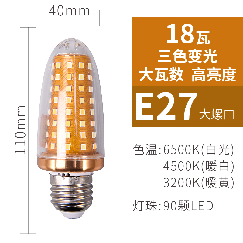 Smart light bulb e14 small screw mouth e27 screw mouth LED light bulb super bright high brightness 18w20w24w30w large watt number high power white light warm light corn bulb three-color light bulb electric bulb