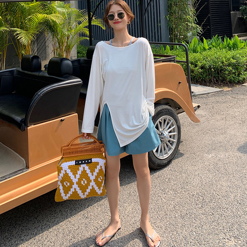 Pregnant Woman Short Pants Summer 2022 New Fashion High Waist Display Slim Casual Pants Relax a word broadlegged pants