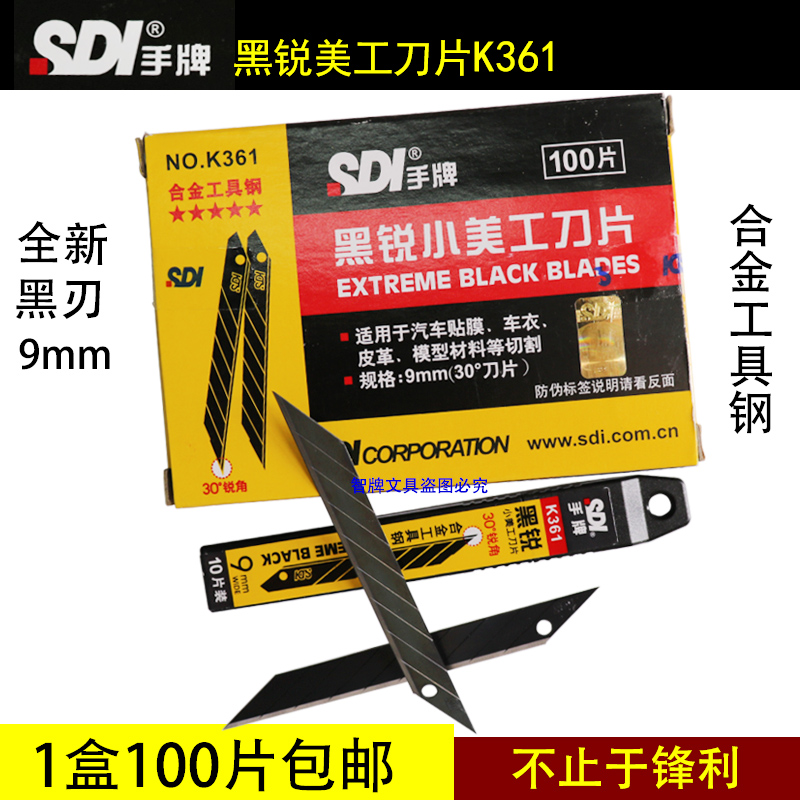 Hand brand K361 art blade full black blade small 30 degree angle imported black steel 9MM car film wall cloth cutting edge