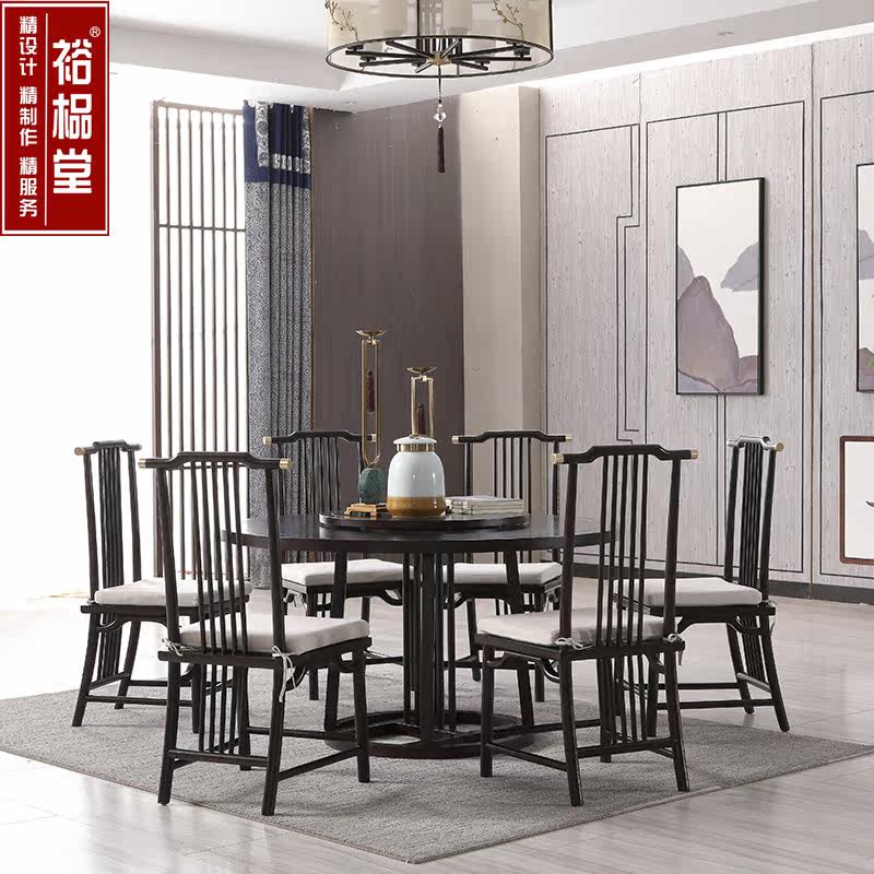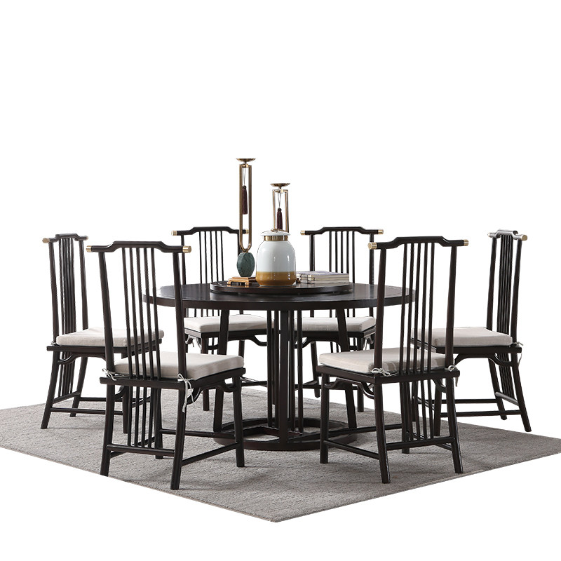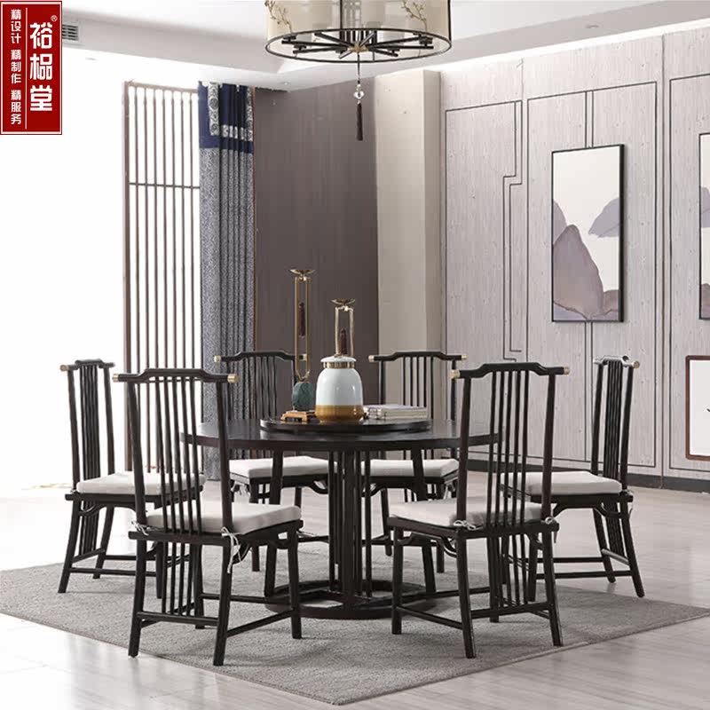New Chinese Dining Table And Chairs Combine Zen Imagery Round Dining Table Sample House Display Center Family Dining Room Sample Board Room Light Lavish Solid Wood Furniture