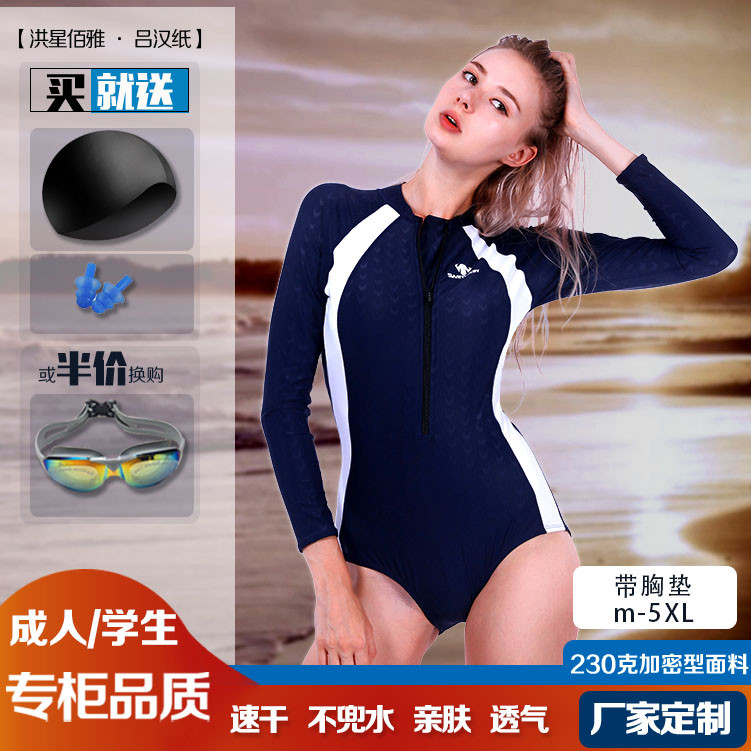 Brand Swimsuit 2022 New Swimsuit Speed Dry Long Sleeves Even Body Triangle Fit Swimsuit Professional Sports Beginnics Tide