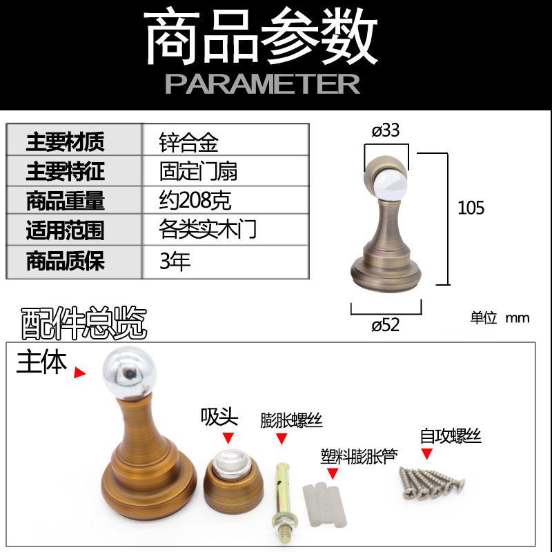 Door suction strong magnetic invisible room door bedroom zinc alloy Kinmen touch punching style wall mounted dressing room anti-bump door stopper