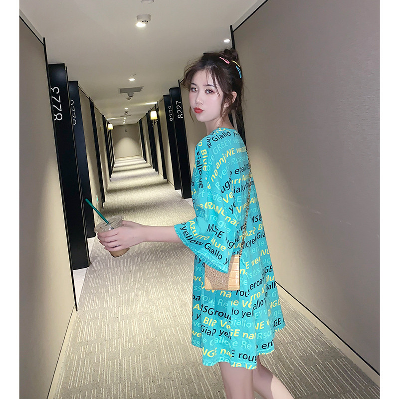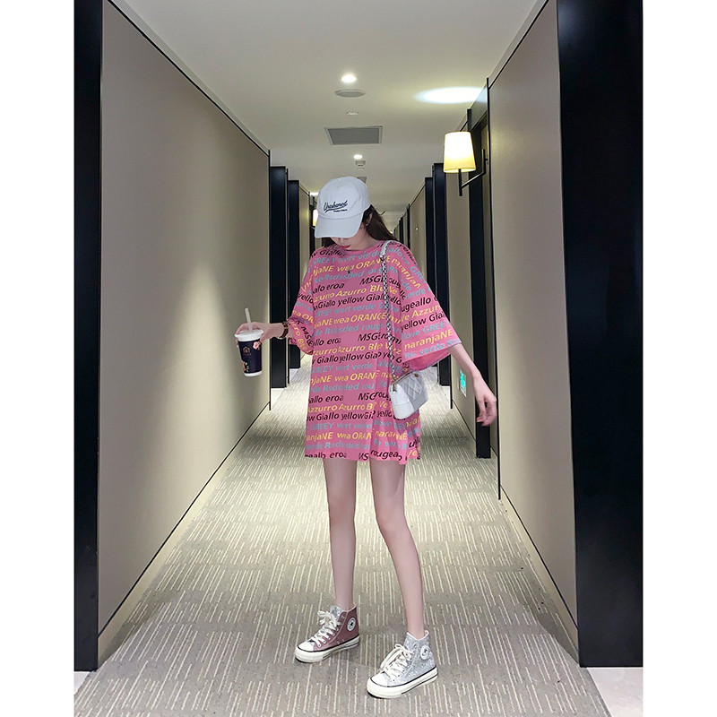 South Korea 2020 Summer New Ins Day Department Loose Medium Long Version Half Sleeve Blouse Port Wind Short Sleeve Big Size T-shirt Woman