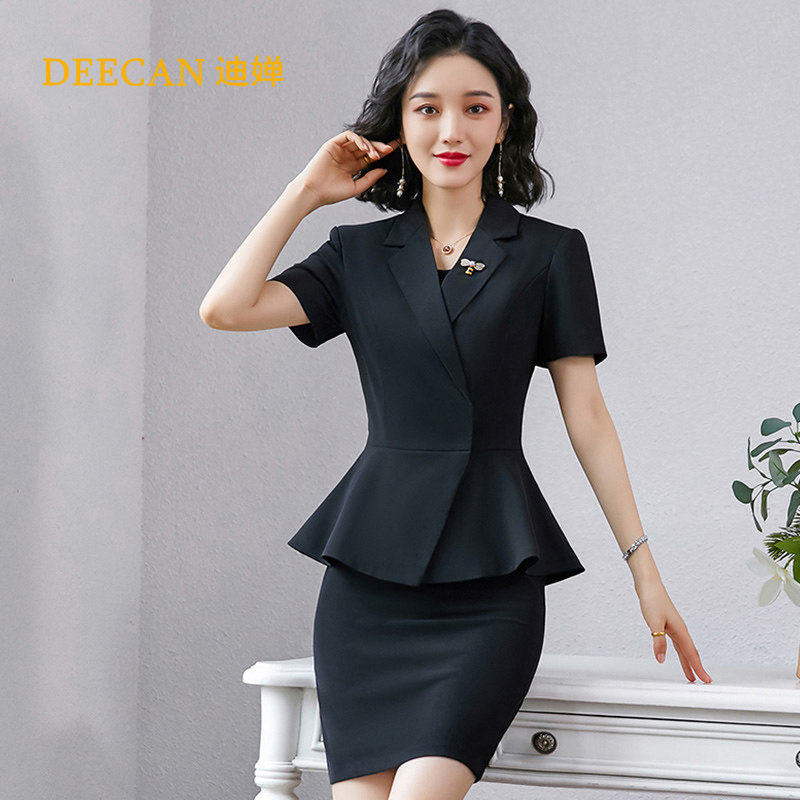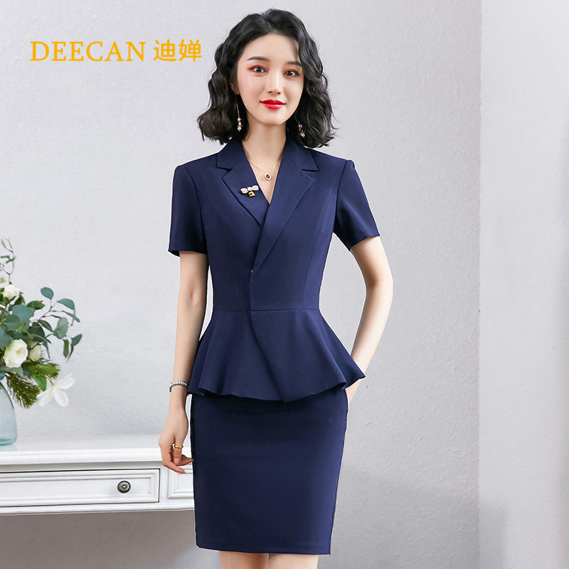 One-piece Blue short-sleeved suit One-piece Black short-sleeved suit Blue Short-sleeved suit Blue skirt Black short-sleeved suit Black skirt Blue Short-sleeved suit Blue Trousers Black Short-sleeved suit Black suit