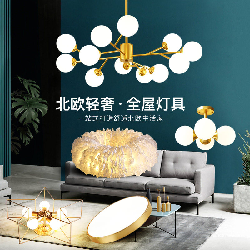 Nordic Style Living Room Lamp Full House Lamps Package Combo Modern Minima Dining Hall Chandelia Bedroom Lamp Suit Atmosphere