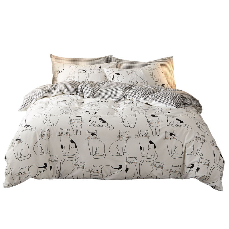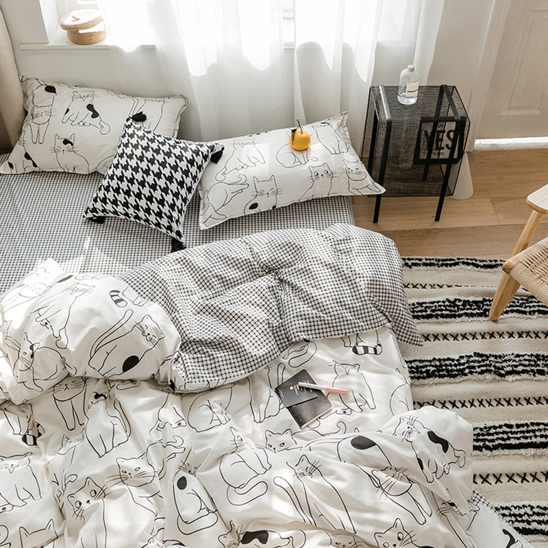 ins day style minimalist frescoed kittens three-four pieces full cotton pure cotton 1 5m1 8 m bed sheet bedding bedding