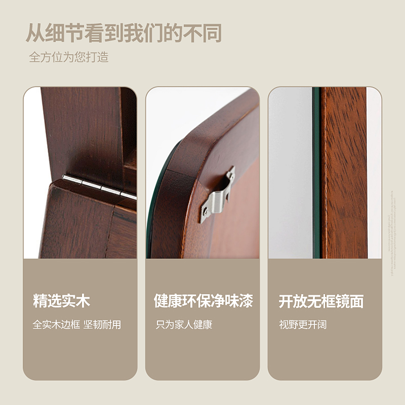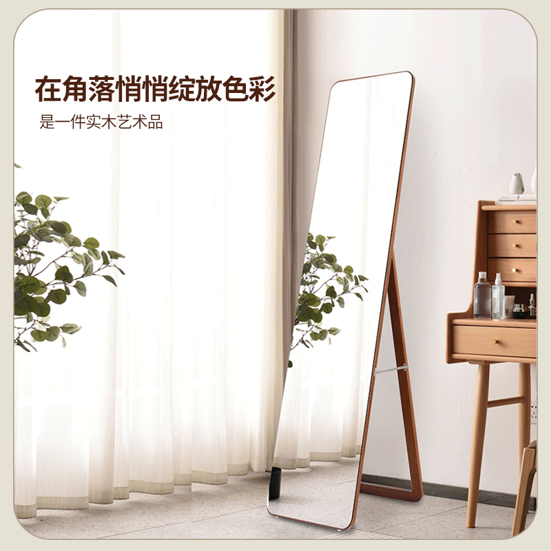 Simple white-solid wood frame hanging wall landing dual use clothing mirror Walnut wood-solid wood frame hanging wall landing dual use dressing mirror (Package A)Simple white whole body mirror 01 shell intelligent makeup mirror (set