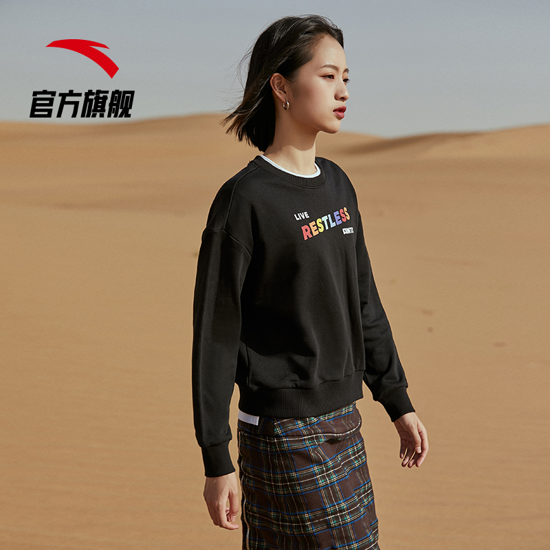 Anta sports sweatshirt women's 2021 spring new official website flagship loose crew neck pullover casual trend top
