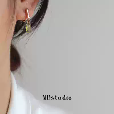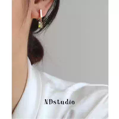ND moss green retro elegant white olive green zircon square drill painless mosquito coil ear clip