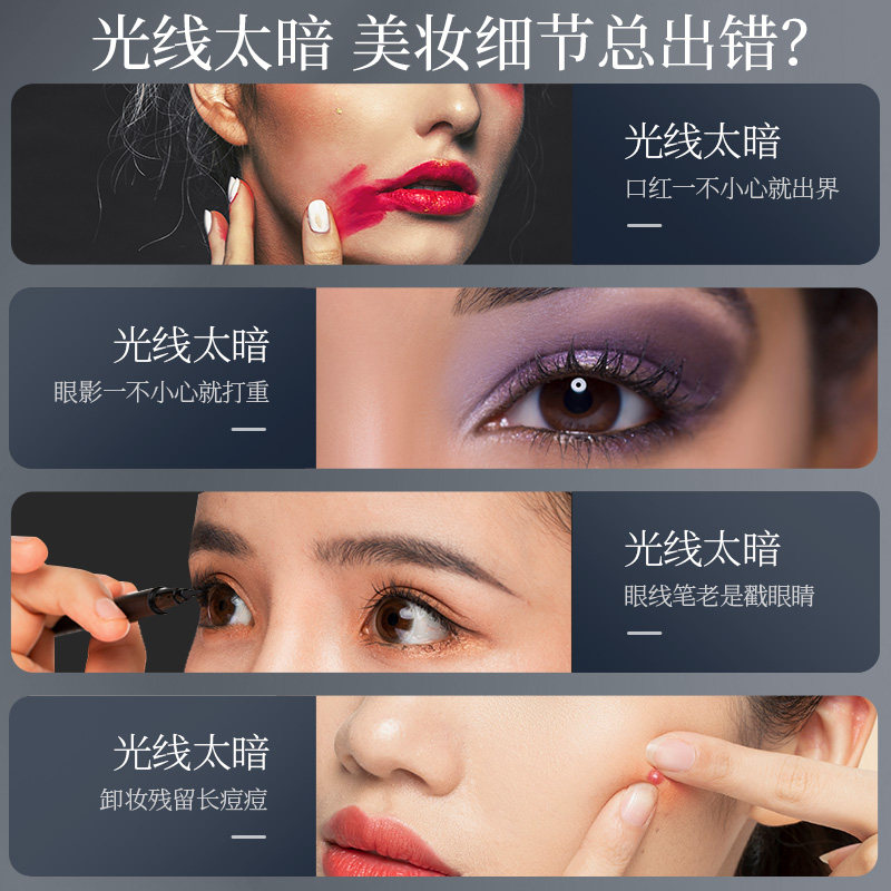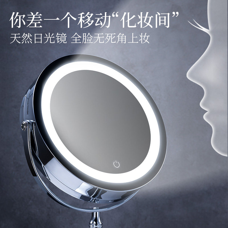 Double-sided makeup mirror Desktop LED with light Desktop portable beauty dressing can be enlarged and flipped high-legged stainless steel