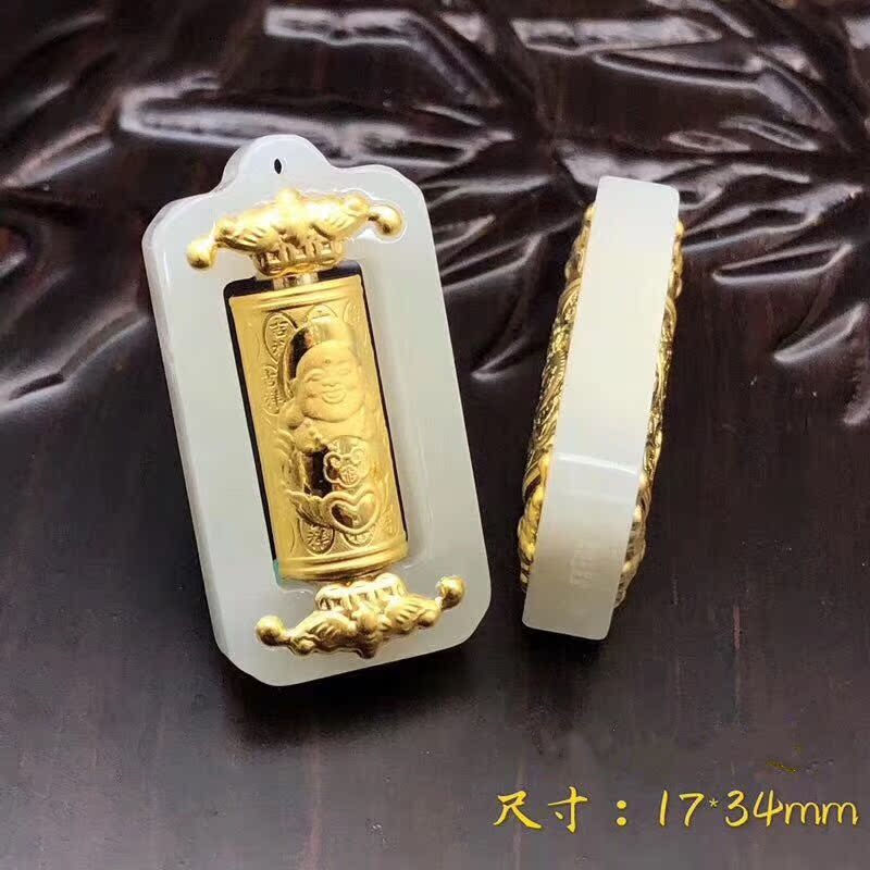 Gold inlaid jade transfer cylinder pendant for men and women and Tian Yu inlaid gold Guanyin Buddha necklace jade pendant dragon and phoenix lovers gift