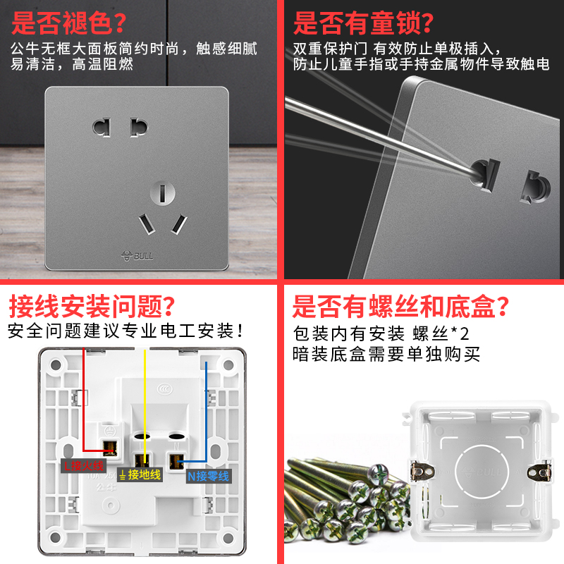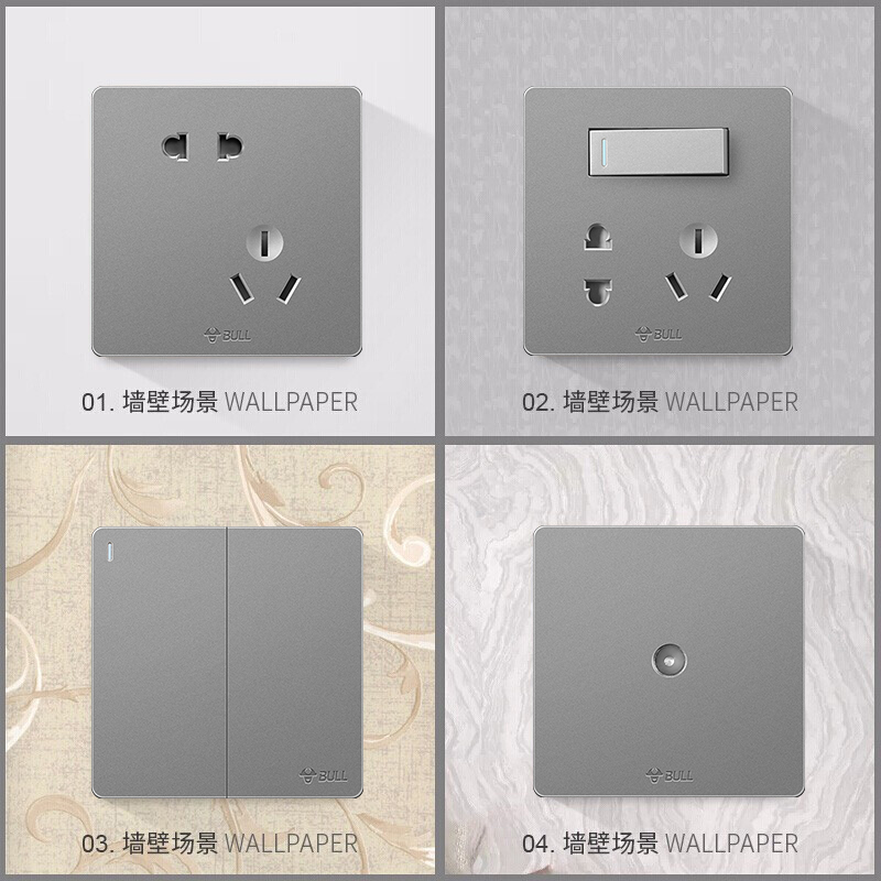 Bull switch socket flag three hole wall panel multi-hole whole house package home concealed five-hole board gray wall plug