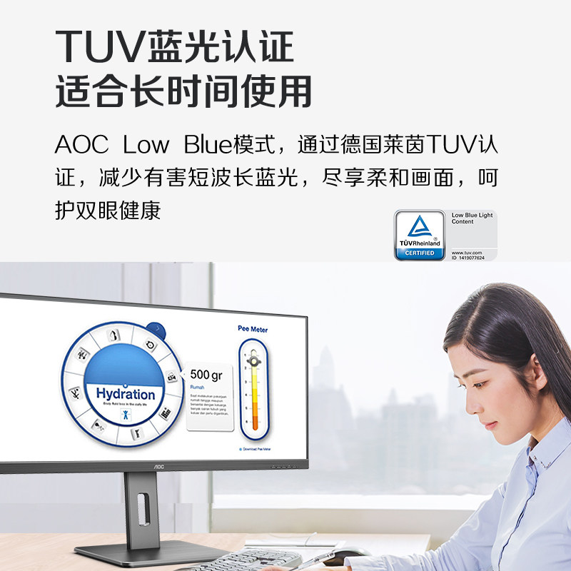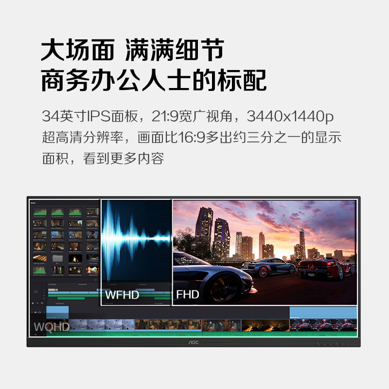 AOC U34P2 BS 34 inch 21:9 with fish screen quasi 4K HD IPS screen office game monitor 2K desktop computer LCD display 27 vertical screen rotation lift design drawing