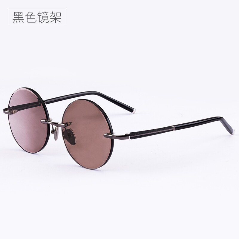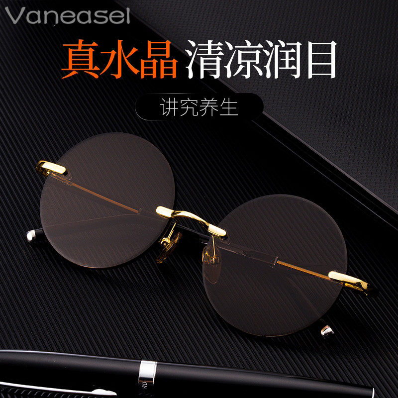 Round crystal sunglasses Stone mirror Men's crystal glasses Crystal stone sunglasses Women's light luxury face small frameless brown
