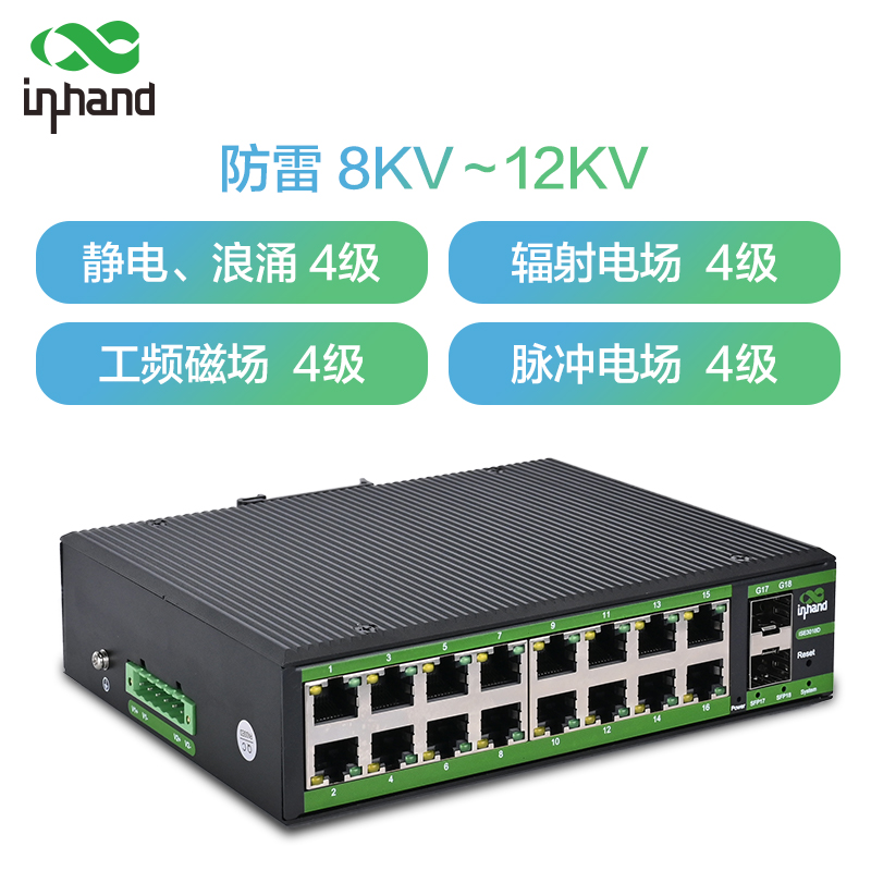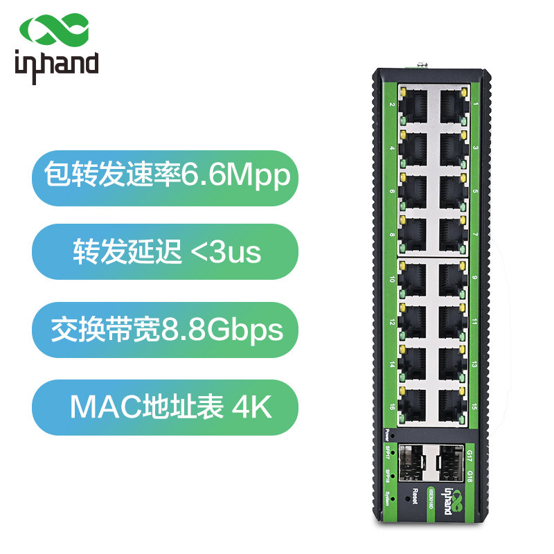 InHand Inhand Industrial Ethernet Switch 18 Ports 16 Electric 2 Optical (Gigabit) Non-network Managed ISE3018D Lightning Protection Wide Voltage Wide Temperature Plug and Play Rail Type