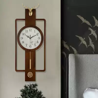 New Chinese wooden wall clock living room wall watch home atmosphere silent traditional Chinese style classical deer head quartz clock